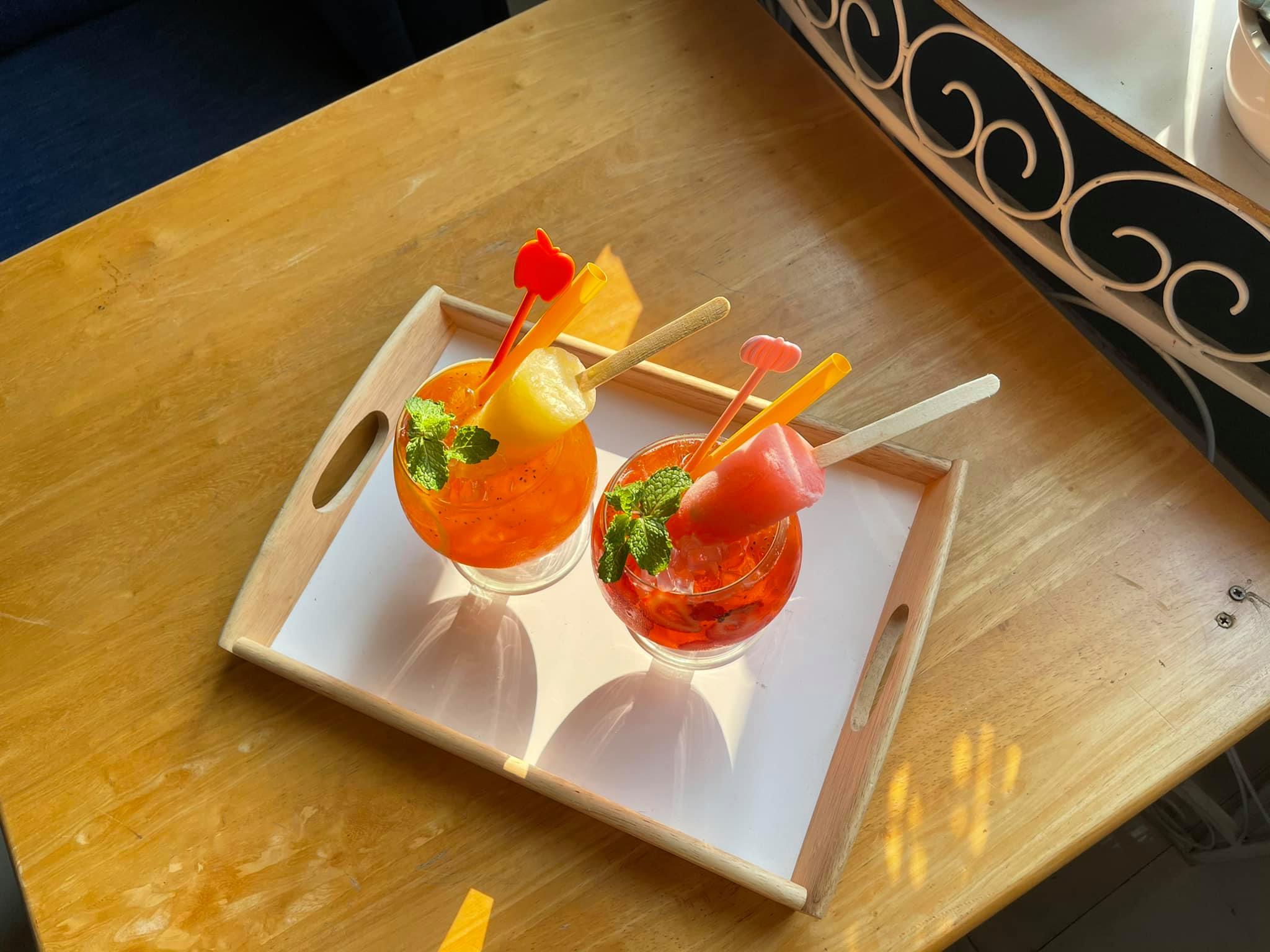 Bước vào quán bạn sẽ bị choáng ngợp bởi bàn ghế tone màu xanh da trời xanh tươi như trong cung điện, đồ uống đa dạng và được trang trí rất đẹp mắt. Vừa uống vừa nhâm nhi vài cái bánh quy ngọt như phim Hàn Quốc ấy nhỉ, đảm bảo bạn sẽ phải ngất ngây khi đến với Tom & Cafe Studio.