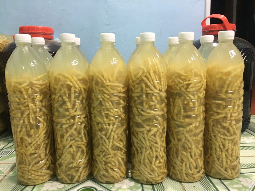 Được ví như “thần dược” của núi rừng Tây Bắc, rượu sâu chít được rất nhiều quý ông yêu thích và chọn lựa mua về làm quà sau chuyến đi đến Điện Biên. Là loại rượu được ngâm từ sâu chít - những con sâu non sinh sống trong thân cây chít héo úa, đây được xem như “đông trùng hạ thảo” tự nhiên của Việt Nam nhờ hàm lượng axit béo không no cao, rất tốt cho sức khỏe.