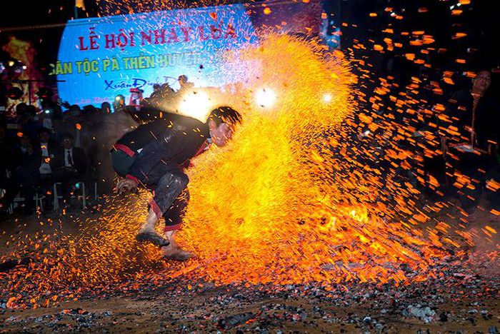 Thông thường, lễ hội nhảy lửa sẽ bắt đầu khi thầy mo người Pà Thẻn làm lễ khấn cầu thần linh ban phước. Khi thầy mõ gõ đàn và bắt đầu cúng, những người nam giới tham gia nhảy lửa sẽ ngồi đối diện thầy mo để làm phép “nhập đồng”. Nhập đồng vừa hoàn tất thì lễ hội nhảy lửa của người Pà Thẻn sẽ chính thức bắt đầu, họ đua nhau nhảy vào đống lửa bập bùng rực hồng với bàn chân trần và dùng tay bốc than tung lên trong không khí hò reo khích lệ của biết bao khán giả.