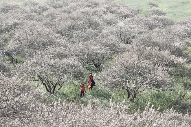 Trong tầng tầng lớp lớp hoa vẫn có màu xanh mơn mởn của lộc non vừa mới hé, điểm xuyết sắc mận trắng tinh khôi một khoảng trời. Hoa mận có mặt ở khắp nơi, ở ven rừng, ven suối hay thấp thoáng bên vệ đường quen thuộc.
