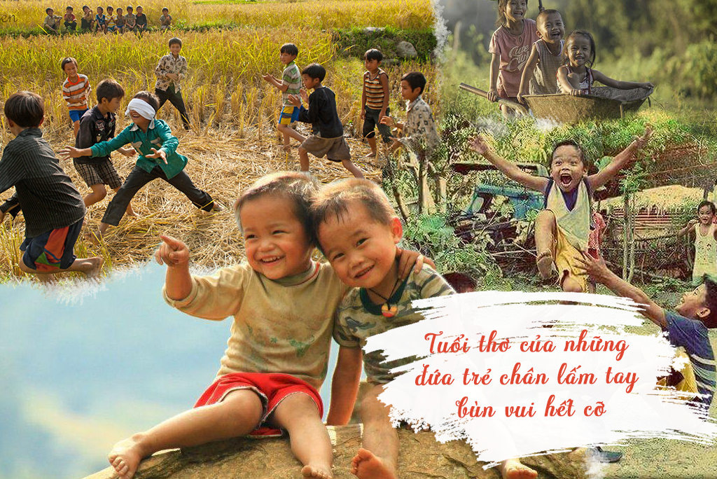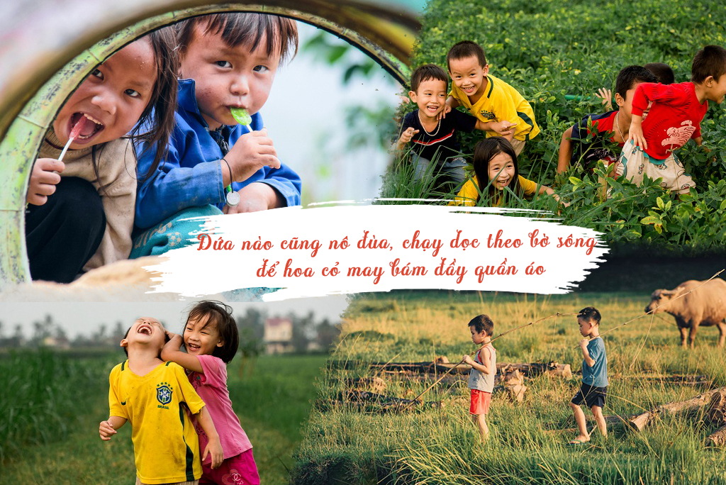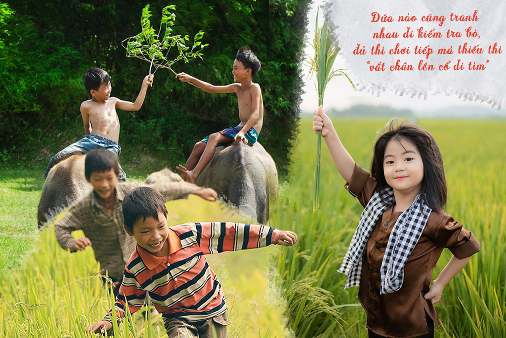 Tuổi thơ của những đứa trẻ nông thôn là những ngày cùng nhau đi thả trâu, thả bò dọc bờ sông, triền núi hun hút gió. Mấy đứa sẽ đi tìm cỏ gà để chọi với nhau, hay hò hét bắt cào cào, châu chấu, bắt dế, thả diều, trốn tìm vui và náo nhiệt đủ cả. Có hôm cả đám còn đem theo khoai lang, khoai mì hì hục nhóm lửa nướng, mặt mũi đứa nào cũng lấm lem khoai chưa kịp chín đều đã vội tranh nhau ăn ngon lành… Rồi những chiều cùng nhau đi tắm mưa vui không thể quên nổi.