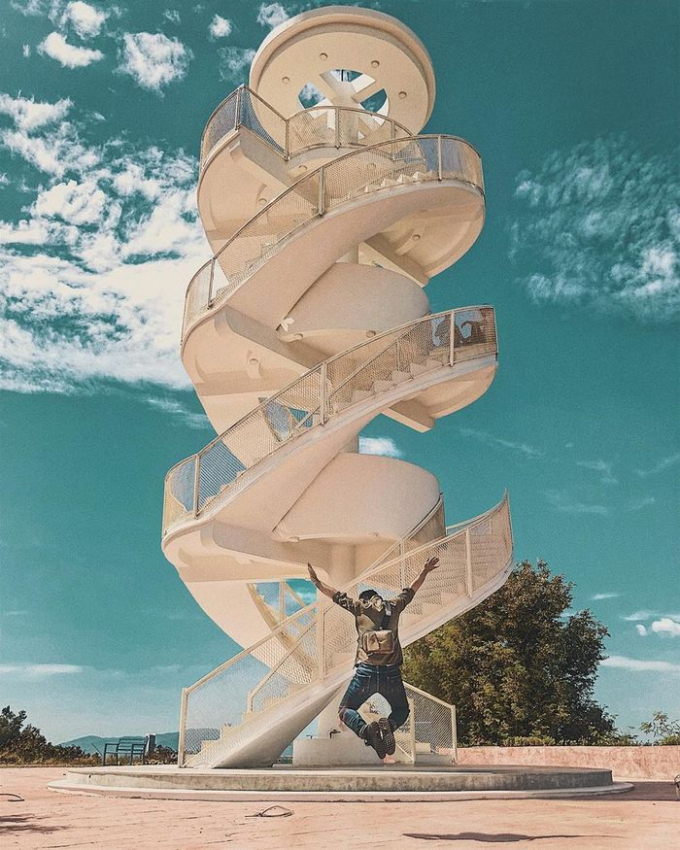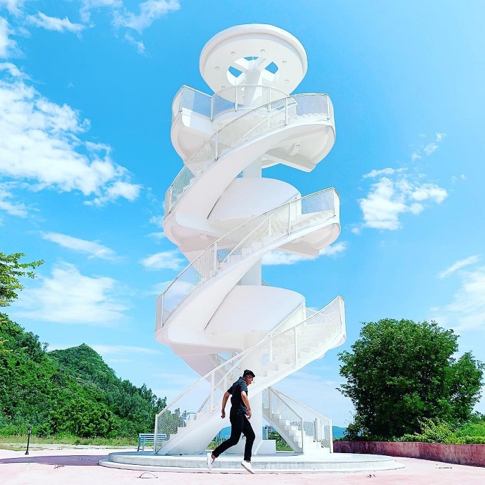 Đặc biệt, khi đứng ở bậc thang cao nhất của cầu thang xoắn ốc này, bạn có thể phóng tầm nhìn ra toàn cảnh vẻ đẹp đầy thơ mộng của thành phố Nha Trang. Vì không nằm trong một tòa nhà nào mà nằm tách biệt bên ngoài nên bạn có thể thoải mái chụp choẹt, không sợ làm phiền đến cư dân sinh sống tại đây.