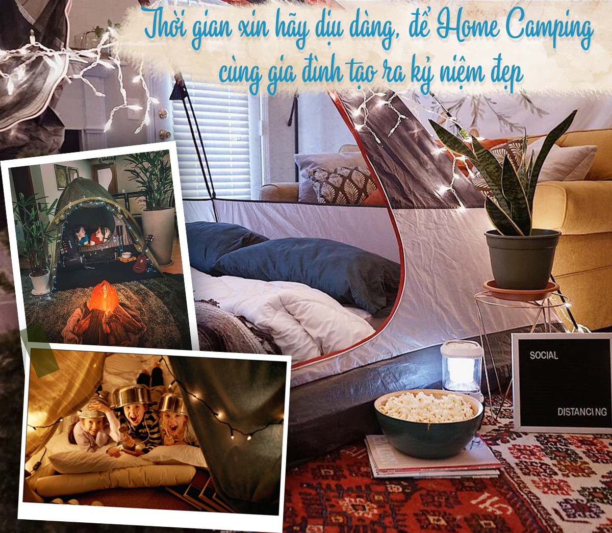 Đừng để thời gian trôi qua trở thành ký ức, hãy xích lại gần nhau hơn nhờ cắm trại tại gia đa màu sắc - mỗi một gia đình/cá nhân đều có phong cách camping rất riêng. Còn chần chừ gì nữa mà không để trái tim mỗi chúng ta gần nhau thêm một chút!