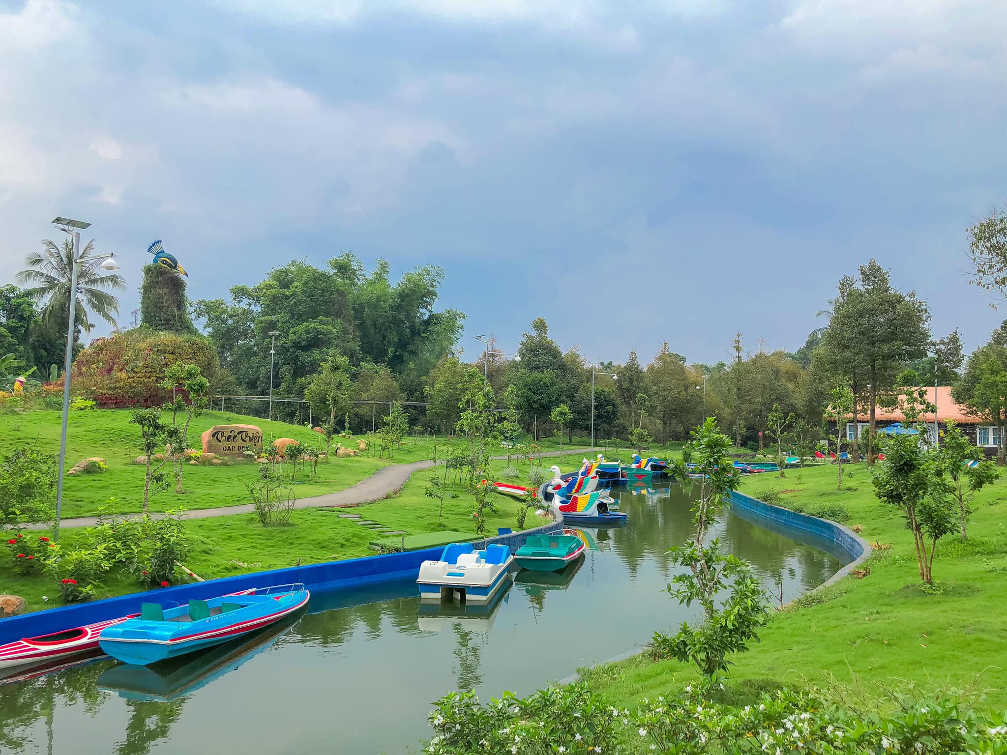Bên cạnh những trải nghiệm thú vị như: chill ở "dòng sông lười", hít thở bầu không khí trong lành, tham gia các trò chơi và hoạt động thể thao hấp dẫn, bạn đừng cũng đừng bỏ qua trải nghiệm tham quan khu vườn sinh thái rộng khoảng 5ha hệt như một khu vườn cổ tích giữa đời thực. Ở đây trồng rất nhiều loại hoa quả nhiệt đới nức tiếng ở thành phố Long Khánh như: Sầu riêng, bơ, bưởi, chôm chôm, măng cụt… và thưởng thức trái cây sạch ngay tại vườn. Các nhà hàng và quán cafe trong khuôn viên cũng luôn sẵn sàng phục vụ nhu cầu ăn uống của bạn với các món ăn Á - Âu và đặc sản địa phương.