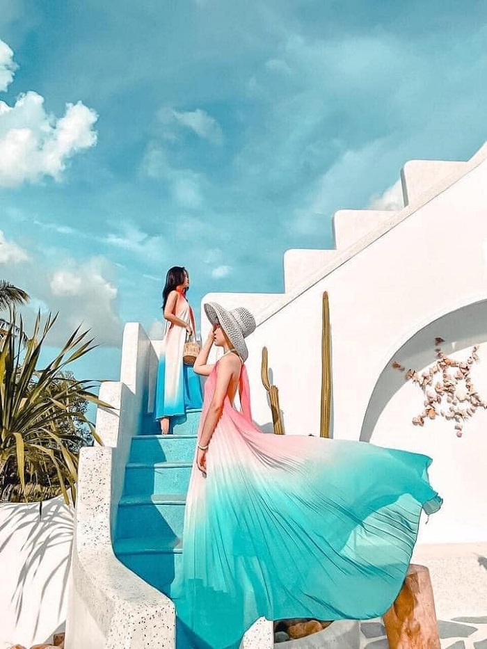 Cũng nhờ những background sống ảo cực chất mà Santorini Villa Studio & Cafe đã trở thành điểm check-in nổi tiếng ở Khánh Hòa được nhiều bạn trẻ ưa thích. Với tông màu hài hòa, tổng thể thân thiện, đơn giản, tạo cảm giác bình yên như chính ngôi nhà của mình. Đến đây vào dịp hè vừa nhâm nhi tách cà phê, vừa chụp ảnh, tránh cái nóng nắng oi ả thì còn gì bằng.