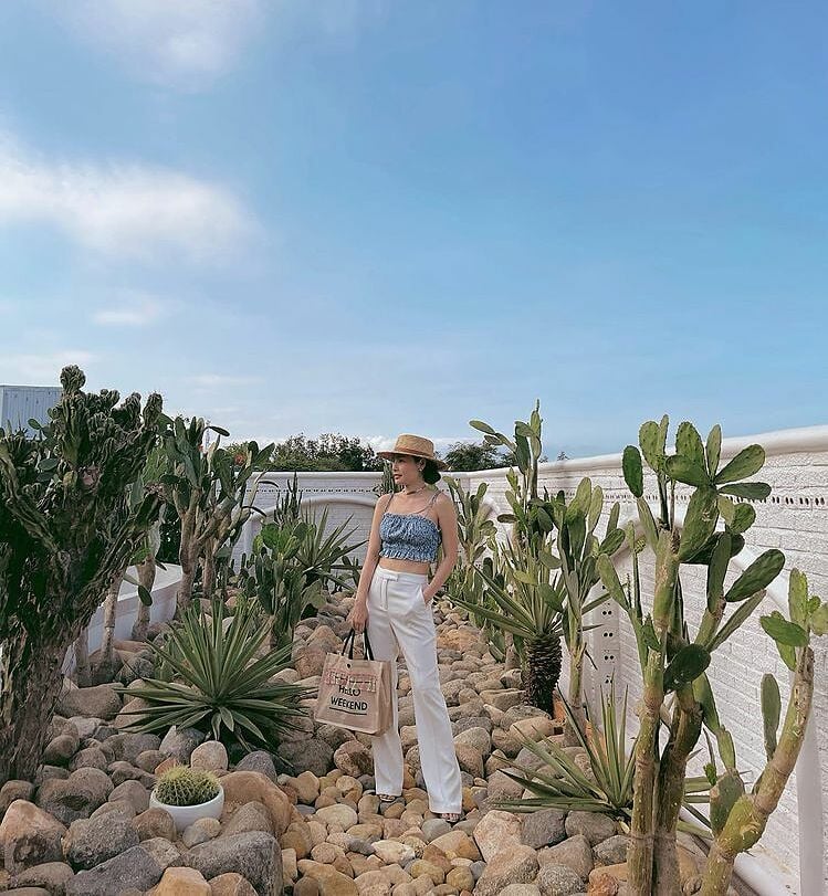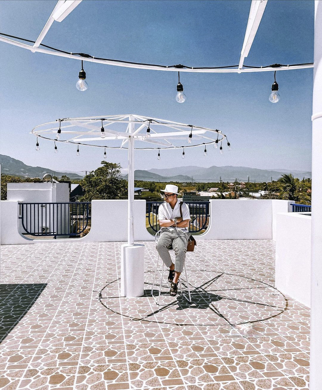 Không chỉ vậy, Santorini Villa Studio & Cafe còn có cả những giàn hoa giấy rực rỡ, những chậu xương rồng siêu to khổng lồ, hồ bơi sang chảnh và những bãi đá gồ ghề cùng tầm nhìn hướng ra bãi Dài xinh đẹp. Đảm bảo đến đây, bạn sẽ tha hồ check-in quên lối về.