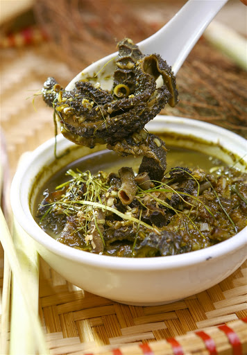 Thoạt nghe có vẻ đáng sợ là thế nhưng nậm pịa chỉ được người Thái nấu trong các dịp lễ hội, sự kiện hay tiếp đón khách quý. Bỏ qua vị đắng nồng và mùi khó ngửi thì đặc sản Tây Bắc này vô cùng bổ dưỡng và có tác dụng giải rượu rất nhanh nên cũng được khá nhiều người dám “vượt qua thách thức”. Khi mới ăn, bạn sẽ thấy có vị đắng nhẹ nơi cổ họng, nhưng càng nhai càng thấy ngòn ngọt và thơm nồng của mắc khén, của các loại gia vị như sả, lá chanh, gừng, ớt.