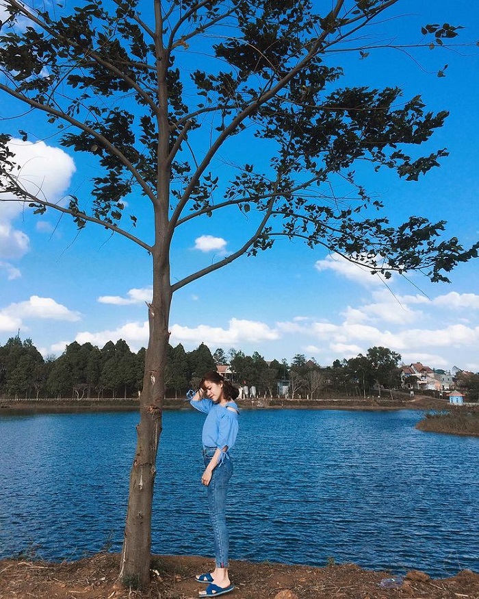 Nếu như muốn có những phút giây chill đúng điệu và tận hưởng bầu không khí trong lành, bình yên tại thị trấn nhỏ Đắk Mil thì bạn hãy đến với hồ Tây Đắk Mil. Nơi đây được ví như đôi mắt trong veo, long lanh và hiền hòa của cô gái trẻ. Khung cảnh ở hồ Tây Đắk Mil vừa đẹp lãng mạn lại có chút gì đó hoang sơ dù nằm giữa phố thị. Đặc biệt, về phía Tây Nam của hồ, những cánh rừng cà phê và cacao xanh mướt khiến ta liên tưởng đến hình ảnh của một ốc đảo xinh tươi, rất ấn tượng.