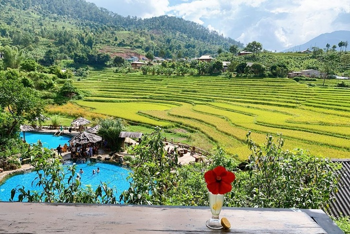 Cảnh đẹp nơi này còn được nhiều du khách ưu ái gọi là “tiểu Bali” của Việt Nam. Hình ảnh những thửa ruộng bậc thang uốn lượn, chạy dọc từ dưới chân đồi lên cao, xa xa là nhà của bản làng người dân tộc ẩn mình trong khu vườn, cùng hệ thống hồ bơi suối khoáng với nhiều hồ lớn nhỏ nằm cạnh nhau đã vẽ nên một khung cảnh thần tiên tuyệt diệu.