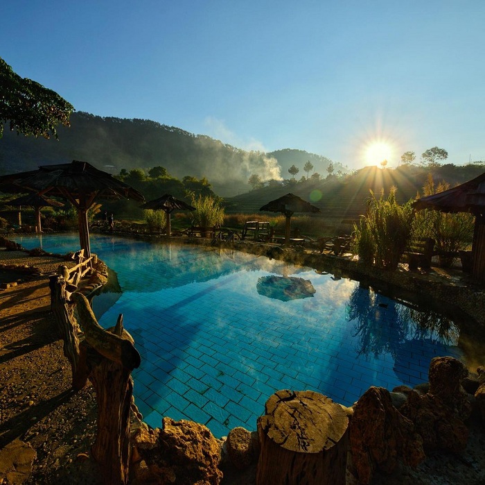 Nước ở đây nóng và bốc hơi suốt cả ngày lẫn đêm. Nên để thuận tiện hơn cho "team lười" di chuyển nhiều, sao không thử ở trong các bungalow tại đây để buổi sáng chỉ cần mở mắt ra là đã có thể tắm khoáng để giúp cơ thể khỏe khoắn hơn hay thư giãn giữa làn nước ấm vào buổi chiều và ngắm những ruộng lúa mênh mang tuyệt đẹp?