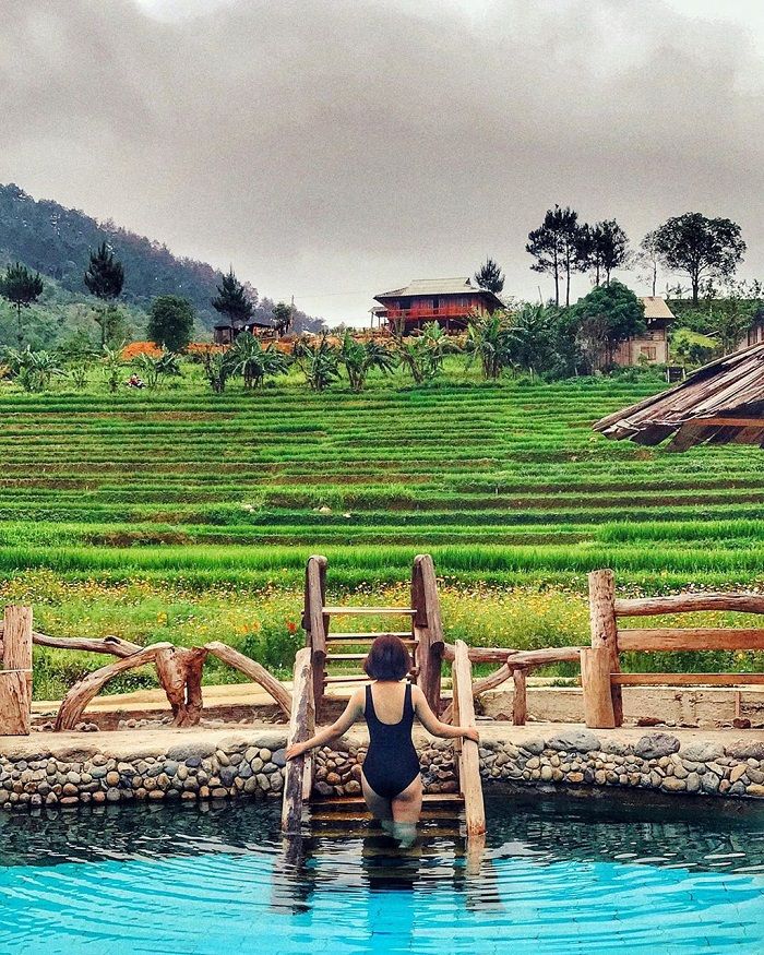 Khu sinh thái suối khoáng nóng là một trong những địa điểm sống ảo đẹp mê mẩn ở Trạm Tấu và mang đến nhiều hoạt động thú vị cho bạn. Tọa độ nghỉ dưỡng này sở hữu bức tranh đồng quê yên bình và được thiết kế với nhiều hạng mục đẹp mắt như: Khu phòng nghỉ dạng bungalow, nhà hàng ẩm thực Tây Bắc, khu hồ khoáng nóng trong xanh. Những ngày cuối tuần nghỉ ngơi tại đây bạn sẽ dễ dàng tìm cho mình sự an nhiên và sạc đầy năng lượng cho tâm hồn.