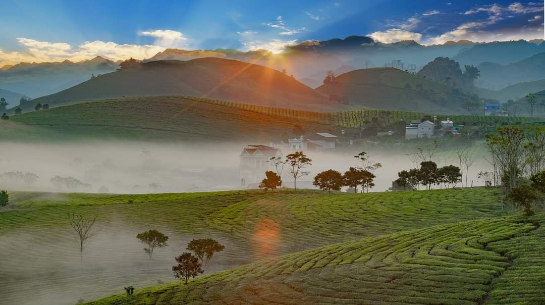 Du lịch Mộc Châu tháng 7 không có nhiều những thảm hoa trải khắp lối đi, nhưng nơi đây hệt như một thiên đường trốn nắng mát mẻ với nương chè mềm mại, uốn lượn trên các chỏm đồi vẫn đủ sức khiến bất kỳ ai đều thấy ngẩn ngơ và mê mẩn. Khung cảnh ở những đồi chè thay đổi nhanh, chỉ vừa thấy nắng thôi thì lại cảm nhận được sương mù ngay sau đó và trở nên huyền ảo hơn bao giờ hết.