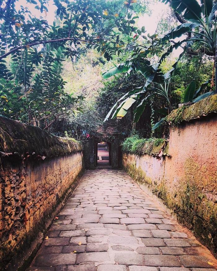 Đến thăm chùa Bổ Đà, có lẽ ấn tượng đầu tiên với bất kỳ ai chính là những bức tường cổ đặc biệt có tuổi đời từ thế kỉ XI được xây dựng bao quanh chùa được làm từ đất sét trộn cùng rơm rạ nhưng vô cùng chắc chắn. Con đường nhỏ dẫn vào cổng chùa được phủ rêu phong theo năm tháng tạo cảm giác như bạn đang bước vào một không gian cổ tích xưa.