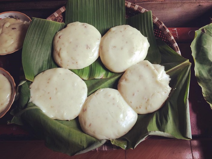Món bánh đúc sẽ được đổ ra phần lá chuối tươi và cho vào từng bát nhỏ, khi miếng bánh không bị dính tay là chúng ta có thể thưởng thức.