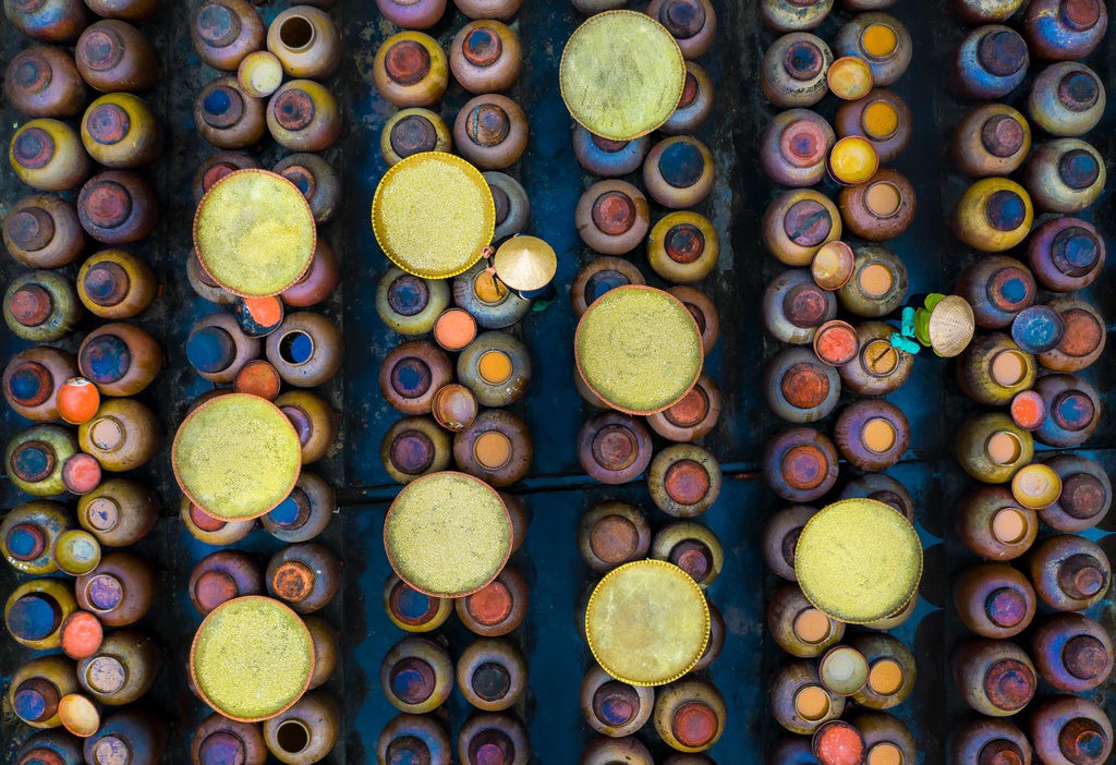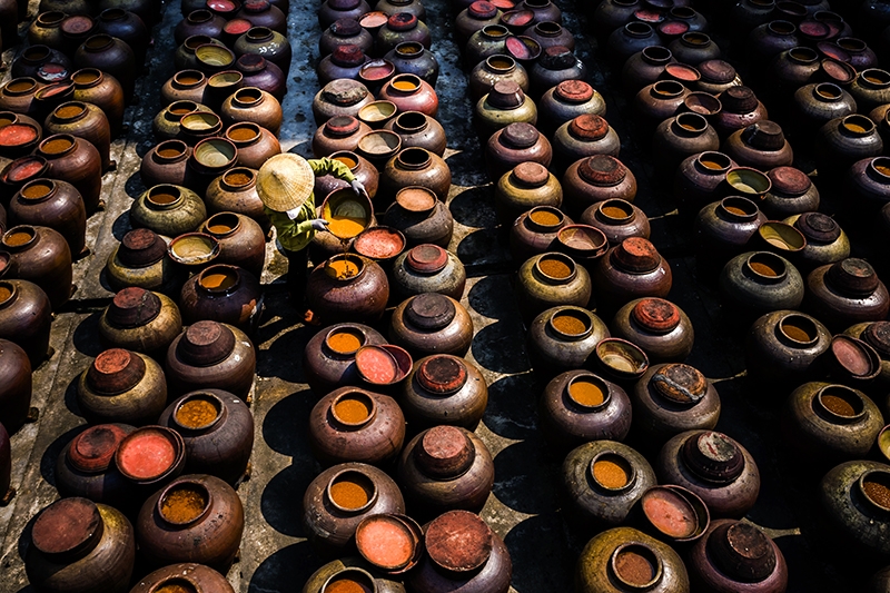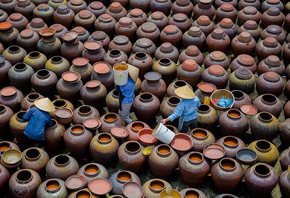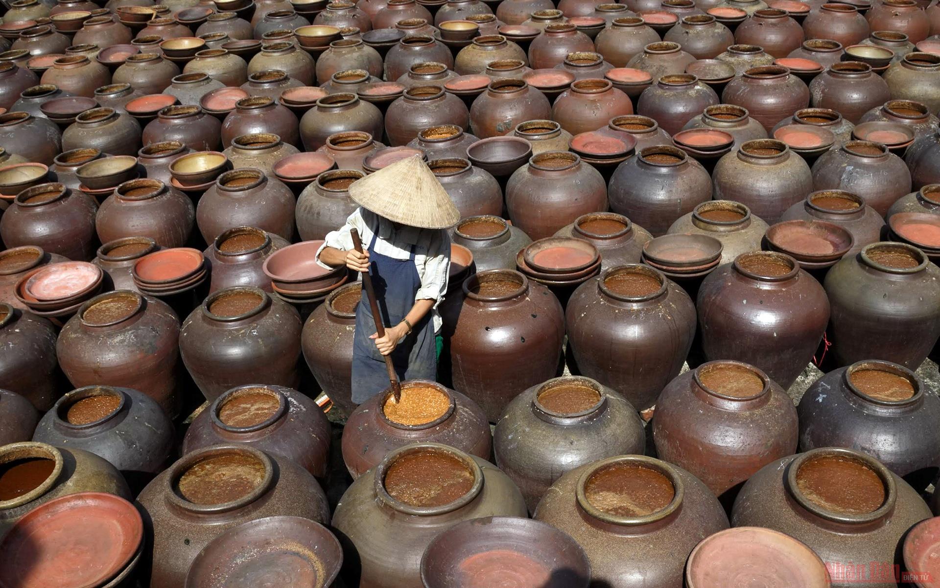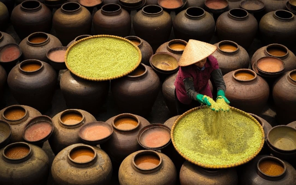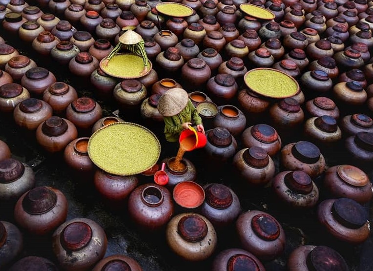 Đến làng nghề tương Bần Hưng Yên bạn sẽ có cơ hội được tìm hiểu về quy trình nấu ra món nước chấm thần thánh này. Không chỉ ấn tượng bởi góc sân trải dài những chum đỗ ngâm xếp thành hàng đều tăm tắp hay những chai tương đủ kích cỡ mà còn là hương vị đặc trưng, nồng nàn trong không gian.