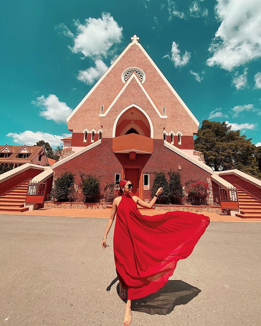 Nếu đặt chân đến điểm du lịch linh thiêng cần sự thanh lịch gọn gàng như Thiền viện Trúc Lâm, chùa Linh Sơn hay chùa Linh Phước… thì bạn nên chọn trang phục đơn sắc, kín đáo và có phần đơn giản. Các bộ váy sặc sỡ tay bồng, kiểu dáng váy xòe vintage nhẹ nhàng thì đặc biệt thích hợp cho không gian có phần bay bổng, rực rỡ sắc màu ở các vườn hoa. Còn nếu chọn lựa điểm đến là các quán cà phê cũ kỹ, đượm màu năm tháng thì diện sắc màu tương đồng với không gian cũng như nội thất trang trí càng khiến bức ảnh thêm bắt mắt.