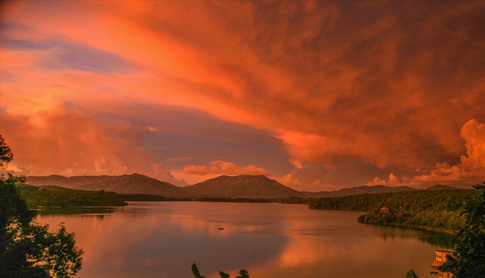 Thế nhưng, đối với nhiều người cảnh sắc hồ T'Nưng trong ánh nắng vàng nhẹ hiu hắt buổi ban chiều, mới thực sự say lòng. Hoàng hôn buông xuống, nắng chiều tà nhuộm đỏ cả một khoảng trời, khung cảnh bỗng nhiên trở nên hoang hoải như muốn níu chân kẻ lữ hành dừng chân ngắm nhìn vẻ đẹp huyền ảo của biển hồ.