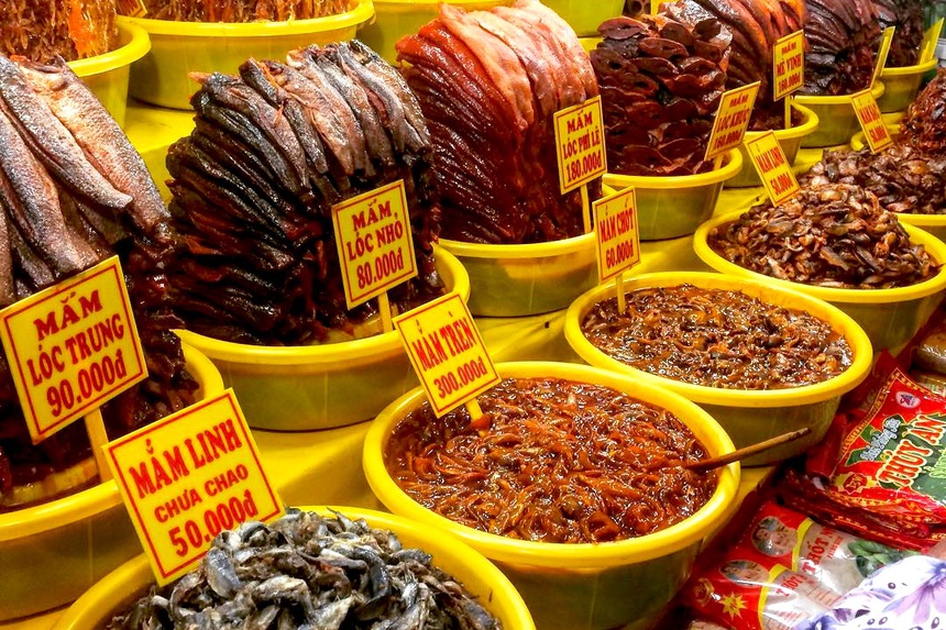 Không phải tự nhiên vùng đất miệt vườn cây trái - An Giang có danh xưng “vương quốc mắm”, chỉ cần một lần ghé thăm chợ Châu Đốc bạn sẽ thấu hiểu lý do vì sao có tên gọi như vậy. Ở trong khu chợ đó, những dải cá khô xếp dài ngay ngắn theo hàng lối, “núi mắm” đủ loại chất chồng thơm nức mũi... đã tạo nên cảnh tượng choáng ngợp mà bất cứ ai đến đây cũng không khỏi bất ngờ.