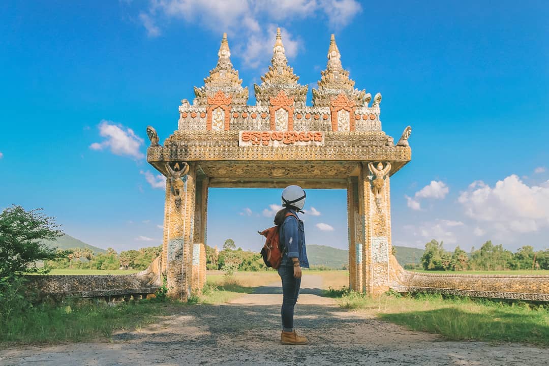 Nằm nổi bật giữa cánh đồng bao la bạt ngàn với con đường uốn lượn quanh co, công trình được ví như chiếc “cổng trời” này sẽ đưa bạn đến với vùng đất Tri Tôn. Cổng được thiết kế với những chi tiết hoa văn đắp nổi tinh xảo, thể hiện rõ nét văn hóa đậm chất Khmer chỉ có ở miền đất nơi đây. Nhìn từ xa cũng vô cùng nổi bật, chính vì thế cổng trời trở thành địa điểm du lịch ở Tri Tôn được nhiều người yêu thích.