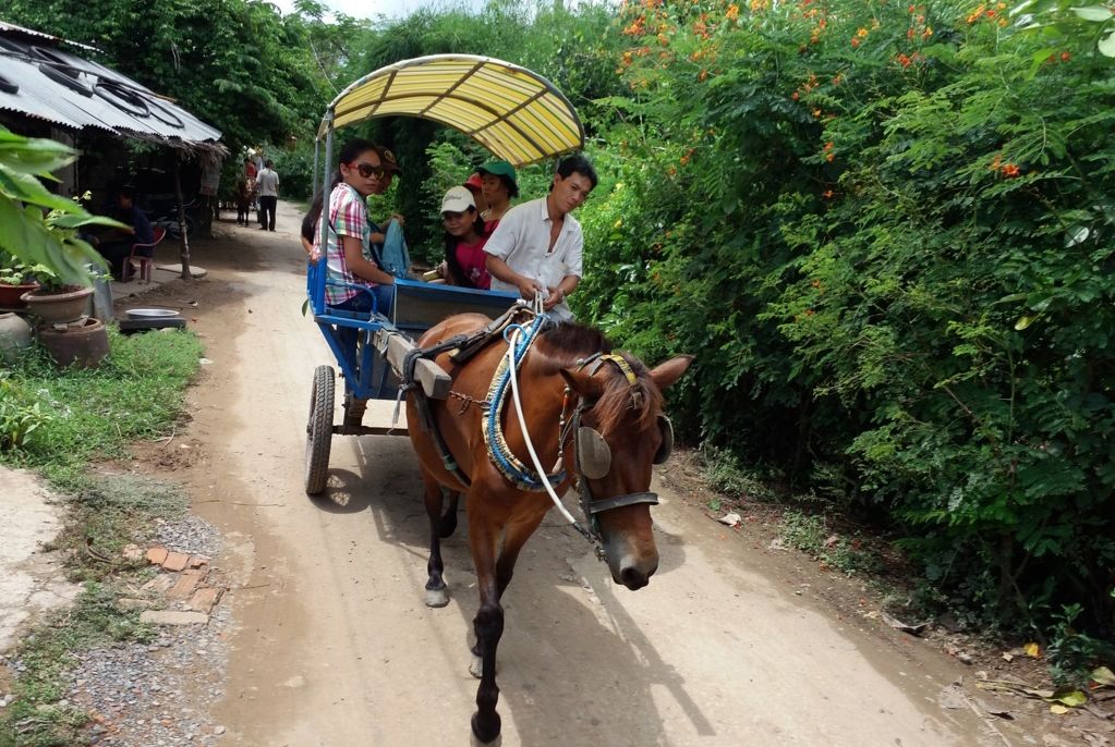 Hãy đến đây và choàng lên mình chiếc áo bà ba thâm trầm cùng chiếc khăn rằn thân thuộc – như những người nông dân Nam Bộ thứ thiệt. Nào thì băng qua cầu khỉ, tát mương bắt cá, chèo đò qua sông hay chơi trái nổ bằng đất sét, làm kèn bằng lá dừa... có trải nghiệm nào làm khó bạn được hay không? Kết thúc cuối ngày bằng thực đơn món ngon ấm tình làng quê như gỏi củ hũ dừa chấm muối ớt, gà nướng muối ớt, cá tai tượng chiên xù, lẩu tôm càng, đuông dừa nướng,... thì chẳng còn gì tuyệt bằng.