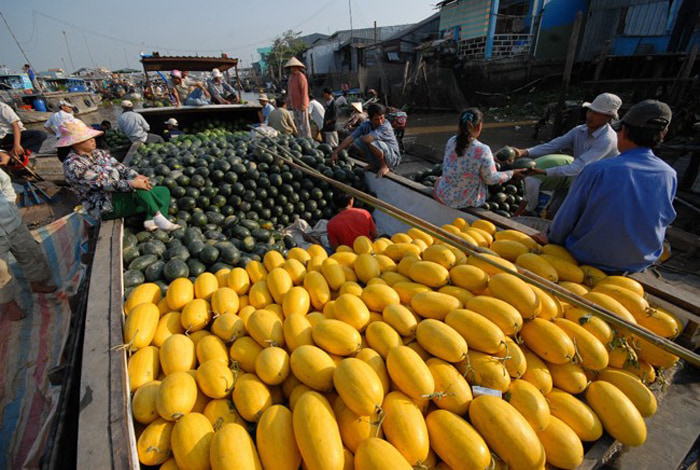 Đi chợ nổi bạn sẽ được chiêu đãi bằng đủ các giác quan từ thị giác bởi màu vàng ươm của những trái xoài cùng màu đỏ tươi của chôm chôm... đến khứu giác qua hương thơm ngọt của sầu riêng… hay tới thính giác bởi tiếng rao vui tai từ nhiều xuồng ghe bày bán nhiều loại trái cây tươi ngon khác nhau. Những đặc sản trái cây miền Tây Nam Bộ này không chỉ thơm ngon mà còn có giá rất phải chăng, vô cùng tiện lợi để bạn chọn lựa mua về làm quà.