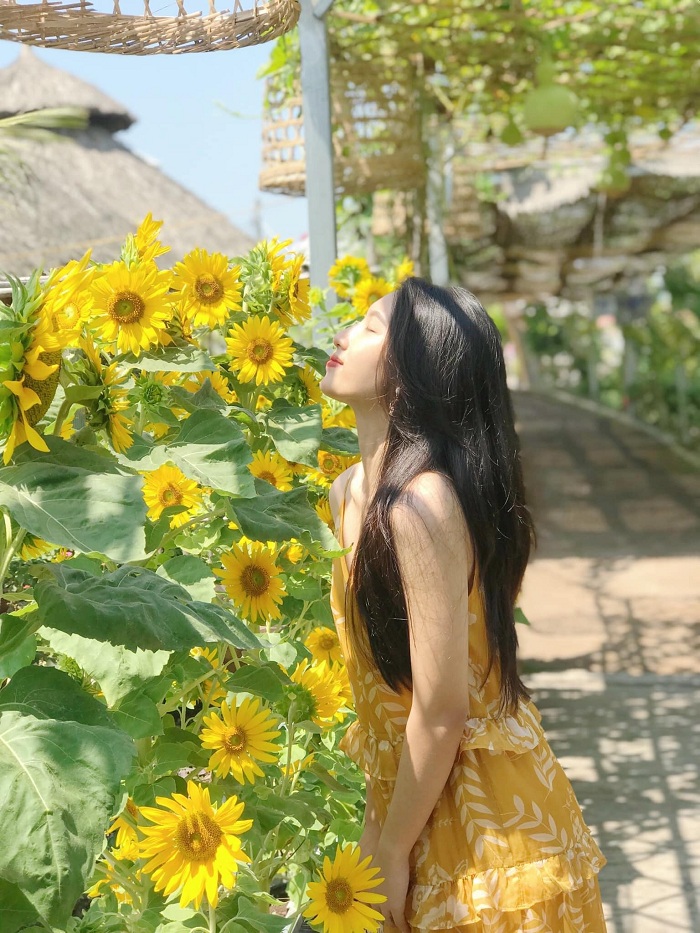 Cùng với đó là lối đi giữa sân vườn, có trồng nhiều hoa hướng dương rực vàng hay khu vườn cánh bướm thắm tươi khoe sắc. Bạn có thể dành thời gian dạo một vòng quanh khu du lịch, hít thở khí trời và dừng chân check - in ở bất kỳ một góc đẹp nào mà mình yêu thích.