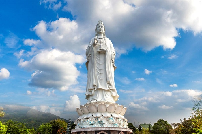 Điểm nổi bật nhất tại ngôi chùa linh thiêng nằm trên bán đảo Sơn Trà đó chính là pho tượng Phật Quan Thế Âm Bồ Tát cao tới 67m, đặt sừng sững trên một đài sen có đường kính 35m. Đây được coi là công trình kiến trúc mỹ thuật tâm linh độc đáo, tập trung nhiều tài – tâm – trí lực và cũng là ngôi chùa có tượng Phật Quan Âm cao nhất cả nước.