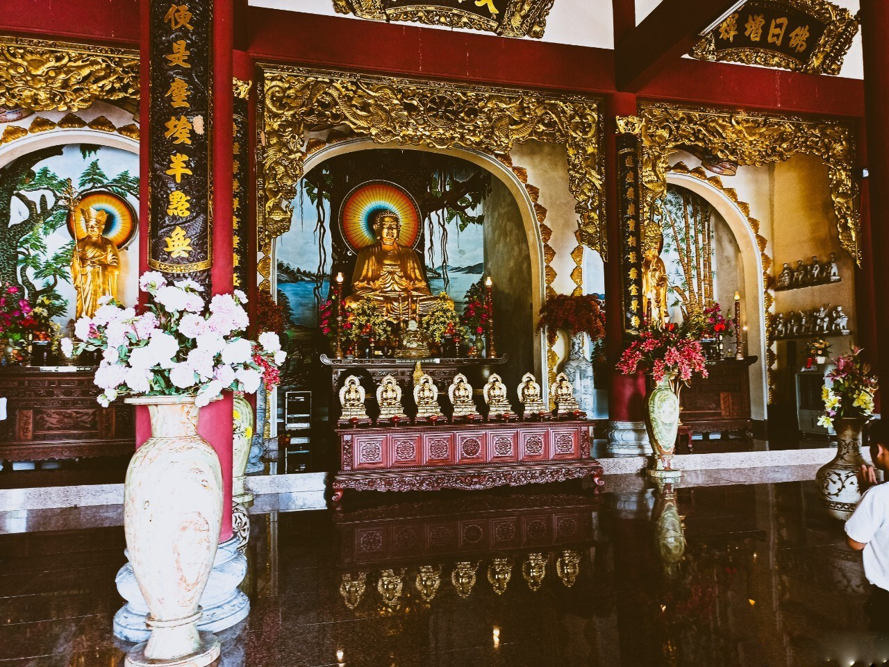 Đặc biệt, bức tượng Phật độc đáo này từng được UNESCO công nhận là tượng Phật Bà Quan Thế Âm cao nhất Đông Nam Á. Trong lòng Phật bà còn có 17 tầng tháp. Mỗi tầng đều có bệ thờ Phật. Từ tuần thứ 2 trở đi thờ 12 ứng thân của Bồ Tát Quan Thế Âm với những dáng vẻ, tư thế khác nhau. Tầng trên cùng thờ 7 vị Phật quá khứ. Đây có thể được gọi là “Phật trung hữu Phật”. Bạn có thể di chuyển lên các tầng tháp này để ngắm nhìn vẻ đẹp của những pho tượng phật tầng cao.