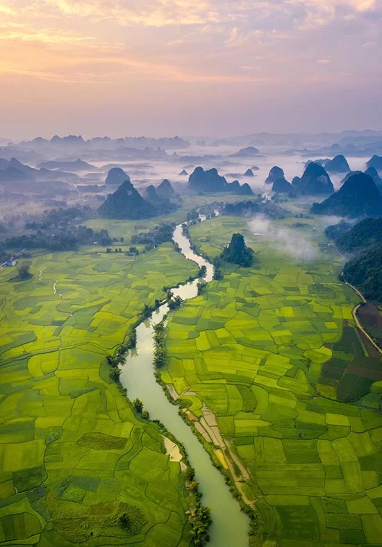 Nhìn từ trên cao, dòng sông Quây Sơn đẹp tựa bức tranh thủy mặc đầy tao nhã. Ảnh: VnExpress