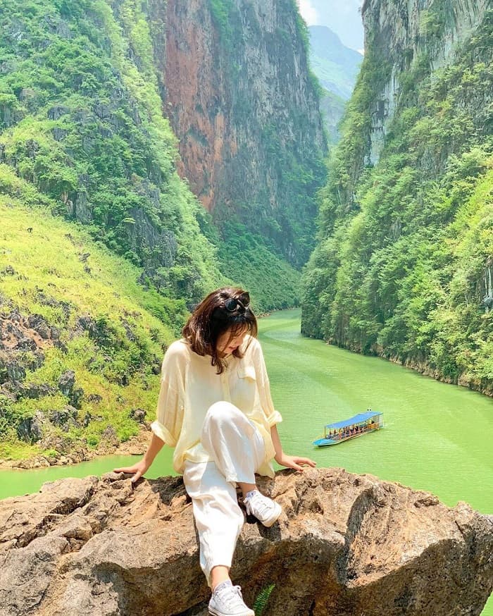 Nếu thích, bạn cũng có thể đi thuyền máy hoặc tự chèo thuyền trên sông Nho Quế để cảm nhận vẻ đẹp gần gũi của dòng sông êm đềm này. Chờ dịch qua đi, mình ngồi thuyền chầm chậm đi qua những vách đá xám xịt dựng đứng, thu trọn vào tầm mắt cảnh sắc ngoạn mục sẽ thật tuyệt vời đến nhường nào sau những chuỗi ngày cuồng chân ở nhà!