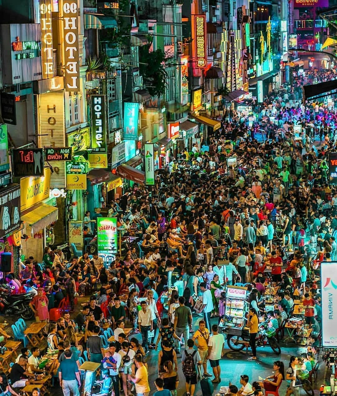 Tối đến hòa vào không khí ăn chơi hết mình của TP Hồ Chí Minh hoa lệ thì không còn gì tuyệt hơn. Để tìm không gian sôi động này chỉ cần đến ngay Bùi Viện, một trong những con phố ăn chơi quên ngủ. Đến với Bùi Viện, những món nướng, quà vặt nổi tiếng cũng rất đáng để làm no bụng, hay nếu bạn muốn một đêm hết mình thì có thể chơi ở các bar, pub trên con đường này. Một số quán khá nổi có thể kể đến: Boheme, Cloud 9 Rooftop Bar, Universal. Saharra Beer Club, Hair of the dog...