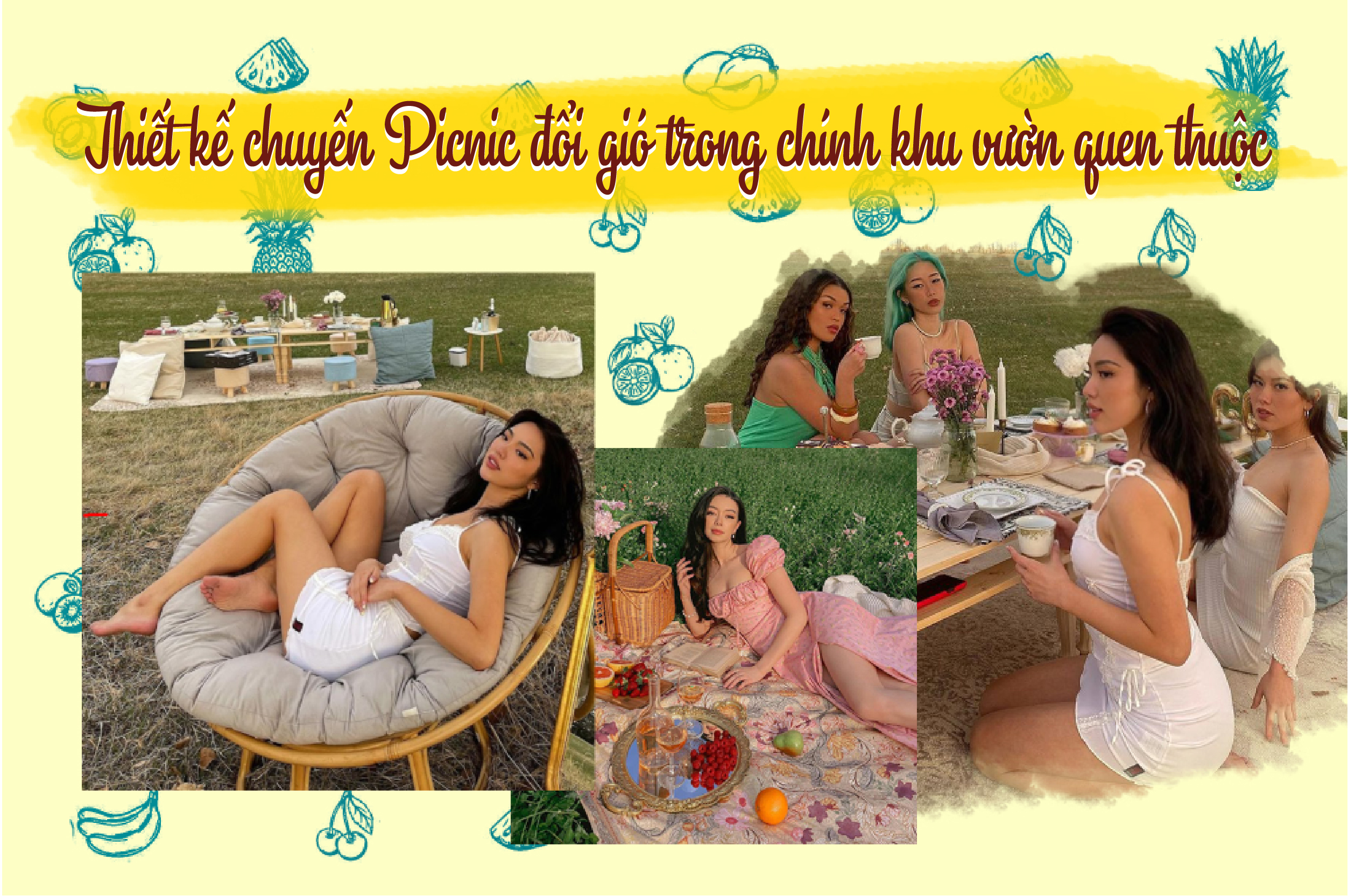 Nếu nhà bạn có một khoảng sân vườn rộng rãi hãy tận dụng ngay để tổ chức một buổi picnic thân mật cùng gia đình. Việc của bạn là chuẩn bị tất cả những món đồ cần thiết như một chuyến picnic thật, chỉ có điều thay vì công viên hay một ngọn đồi xa nào đó thì địa điểm sẽ là sân vườn quen thuộc của nhà mình mà thôi. Để lên hình "sống ảo" lung linh, bạn cần diện trang phục màu sắc rực rỡ bắt mắt, thêm trái cây và một chiếc thảm tone sur tone nữa là ổn áp.