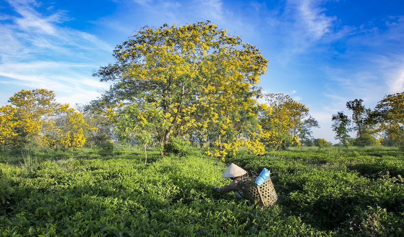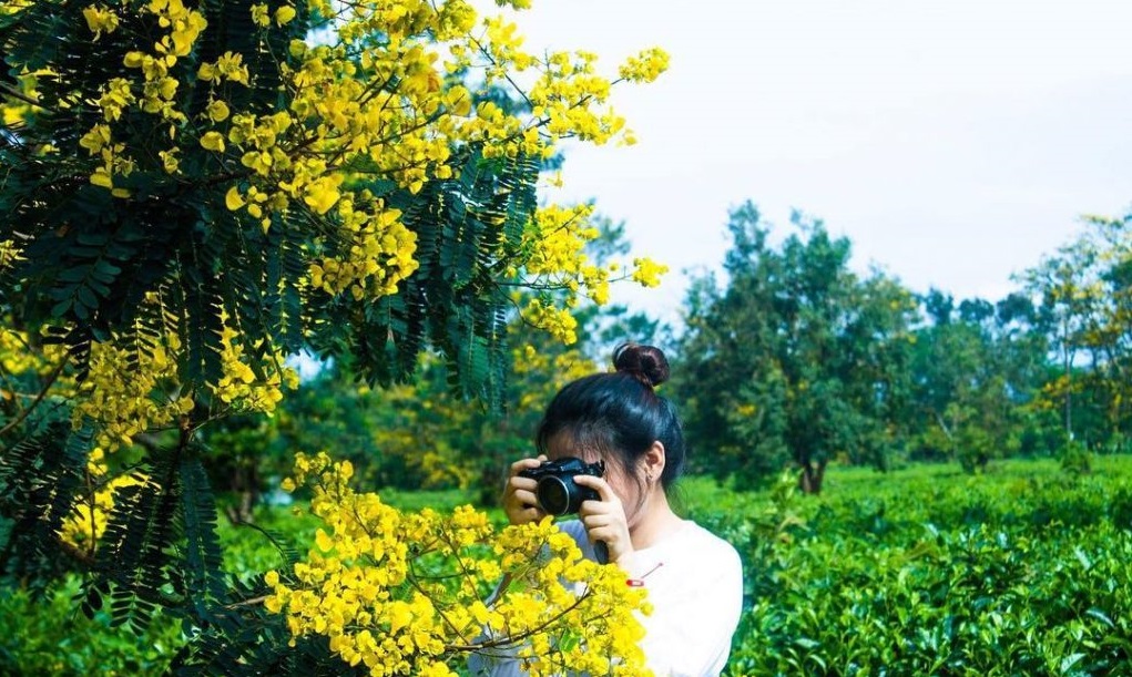 Nếu là tín đồ thích săn những bức ảnh “sống ảo” vừa chất lượng lại không lo đụng hàng, bạn sẽ không thể bỏ qua Bàu Cạn - một trong những nơi cực kỳ thích hợp để ngắm hoa muồng vàng. Cây hoa muồng mọc xen kẽ, “lấp ló” giữ các đồi chè ở Gia Lai, bạn có thể quan sát rõ ràng và chụp ảnh lưu lại kỷ niệm tại nương chè đội 2 và đội 3 thuộc nông trường chè Bàu Càn, huyện Chư Prông.