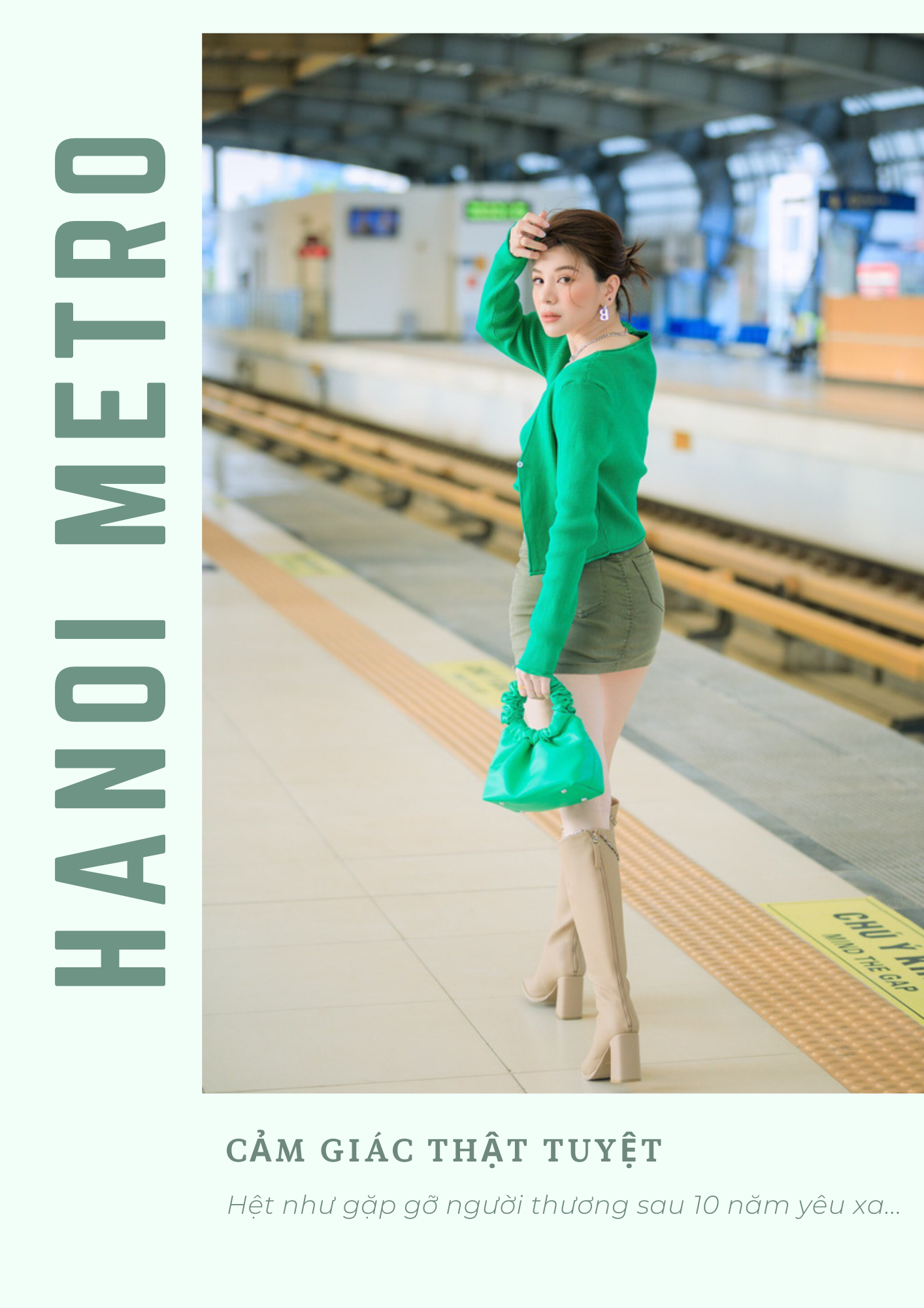 Chưa hết đâu, bối cảnh xịn xò nhất với những người muốn check-in với tuyến đường sắt Cát Linh - Hà Đông thì chắc chắn không thể bỏ qua đoàn tàu. Không cần làm gì nhiều, chỉ cần đứng trước toa tàu cũng đủ để bạn có những bức ảnh rất Tây rồi. Tuy nhiên nếu chụp với toa tàu bạn nên để ý thời điểm, tránh làm ách tắc đường lên xuống của hành khách khác nhé.