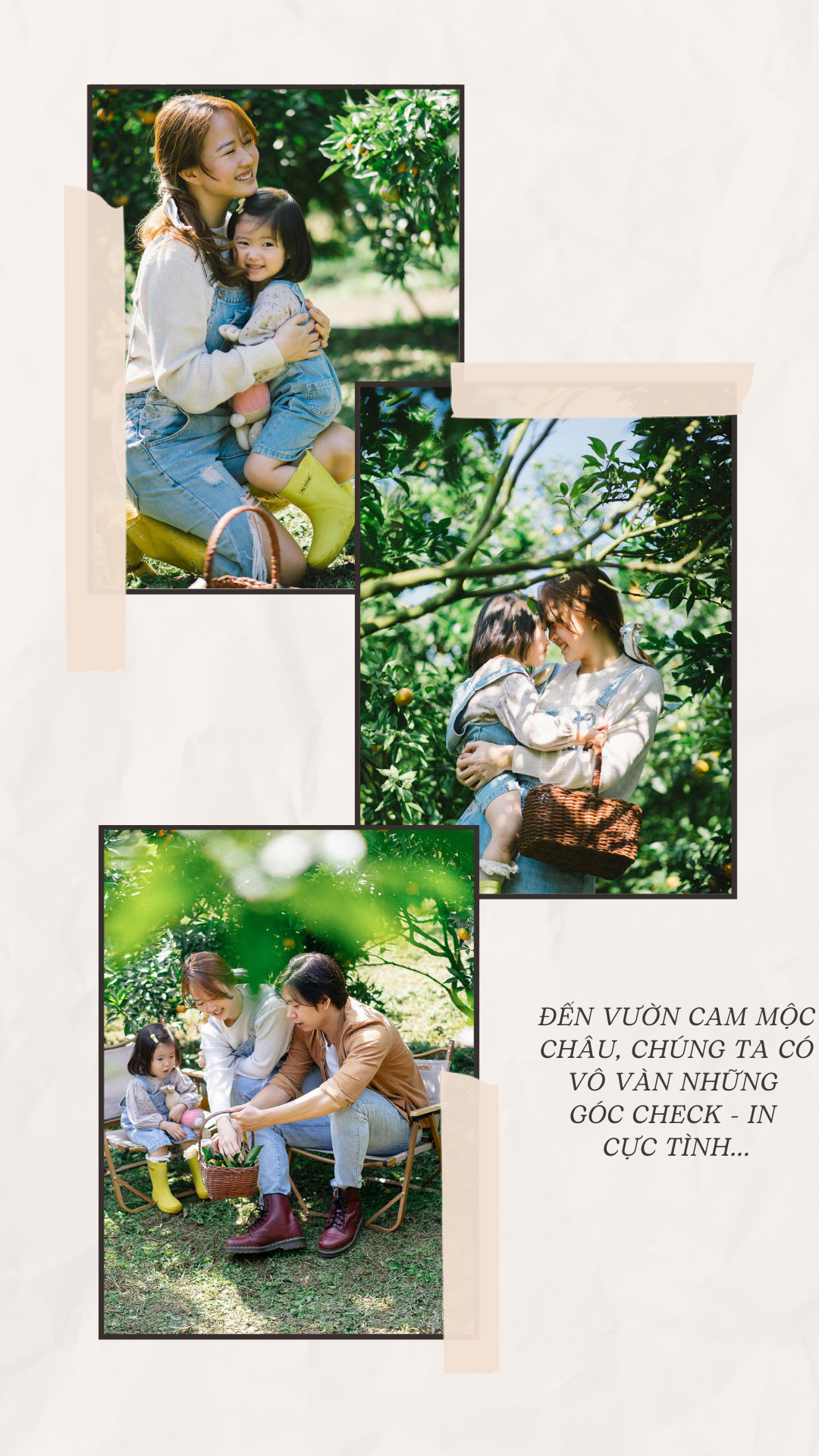 Đến với những thước ảnh của gia đình nhỏ Ly Le từ hội nhóm về du lịch, thật không khó để cảm nhận sự vui vẻ, cảm giác thoải mái của mọi thành viên trong nhà khi check - in ở vườn cam Mộc Châu. Đến đây, cả nhà vừa có thể chụp ảnh "thả ga" vừa có thể hái cam ăn luôn tại vườn. Vậy góc "thần thánh" này ở đâu bạn đã biết chưa?