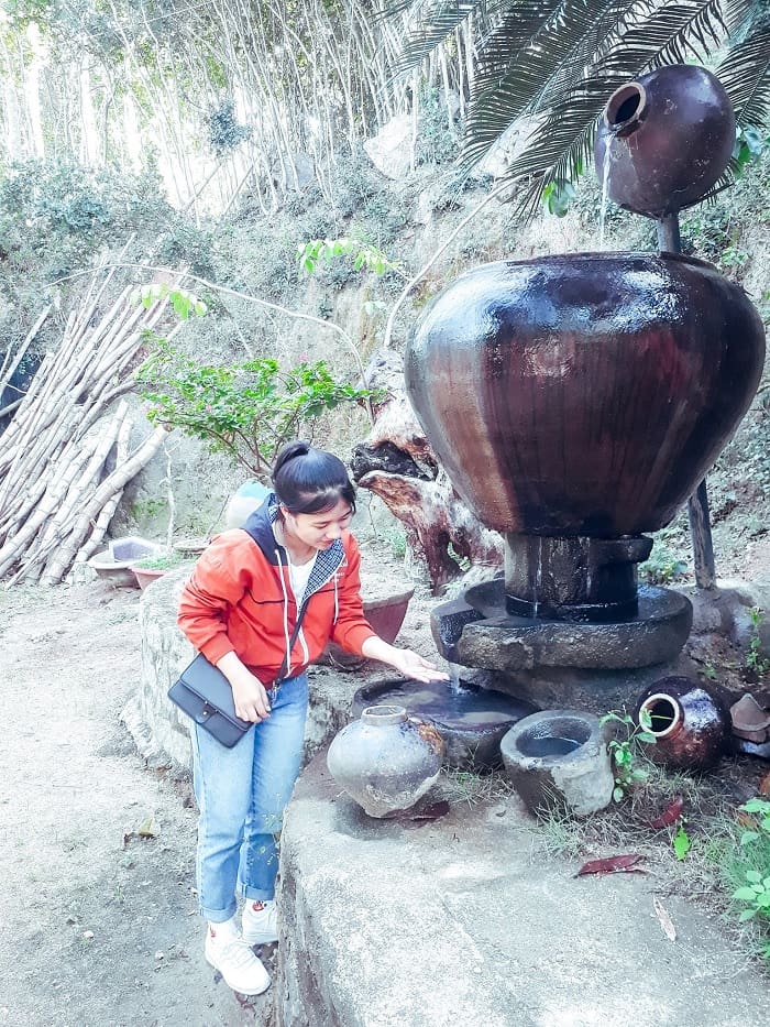 Những tảng đá lớn đá nhỏ xếp chồng lên nhau tạo thành đường đi, cầu thang, tường rào, bờ ruộng, bờ suối, nhà đá và đền miếu, thậm chí trong làng còn có đến 12 giếng Chăm xây bằng đá đã được tồn tại hàng trăm năm, ngày nay đã phủ đầy rêu phong nhưng vẫn còn nguyên vẹn như thuở ban đầu, đó là lý do vì sao ngôi làng được gọi là “nàng công chúa Champa ngủ giấc ngủ dài giữa không gian văn hóa Sa Huỳnh bỗng một ngày tỉnh giấc”.