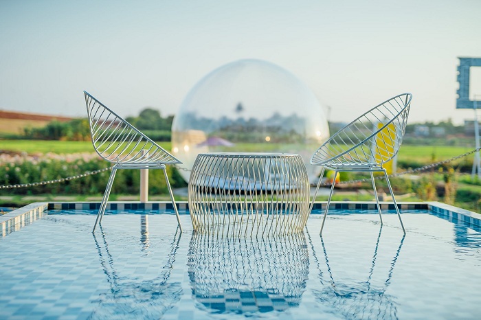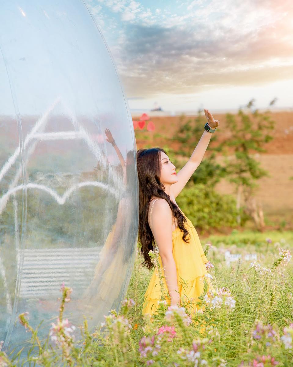 Hẳn bạn sẽ mê tít hồ nước xanh trong mát mẻ, không gian đầy hoa thơm, cỏ lạ ở khu du lịch. Những khu vườn nở đầy hoa tươi, những lối đi ngập tràn cỏ cây xanh ngát hay căn phòng bong bóng hệt như câu chuyện cổ tích sẽ là nơi lý tưởng để bạn thả dáng, chụp thật nhiều bức hình ưng ý.