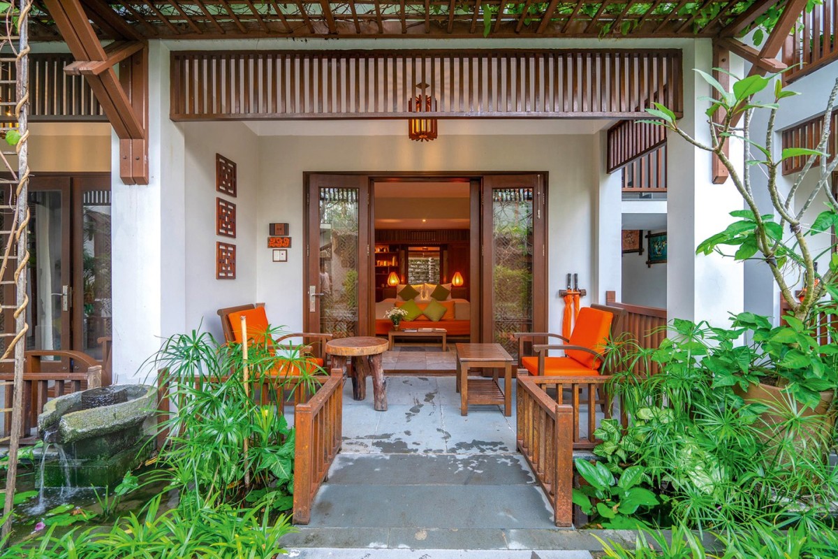 Anantara Hoi An nép mình bên dòng sông Thu Bồn, ngay phố cổ Hội An, giữa những hàng dừa xanh mát. Nơi đây có phong cách thiết kế ảnh hưởng giữa châu Âu là Pháp, Hà Lan và châu Á là Trung Quốc và Nhật Bản. Vì vậy, khi đến bạn đến đây sẽ choáng ngợp màu sắc văn hoá đa dạng hấp dẫn của Hội An. Các phòng đều hướng ra sông hoặc sân vườn nên khá thoáng đãng.