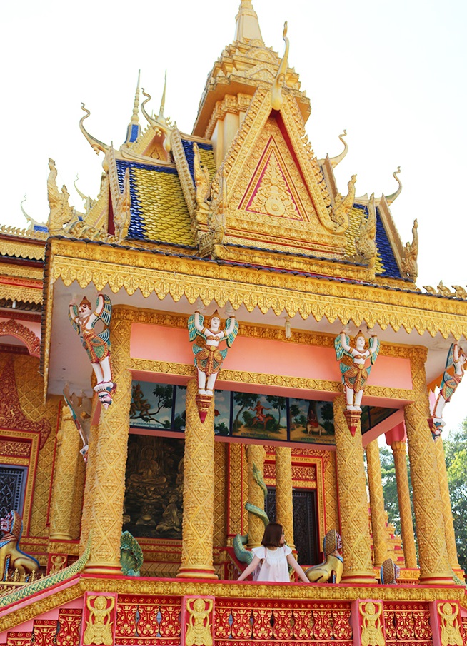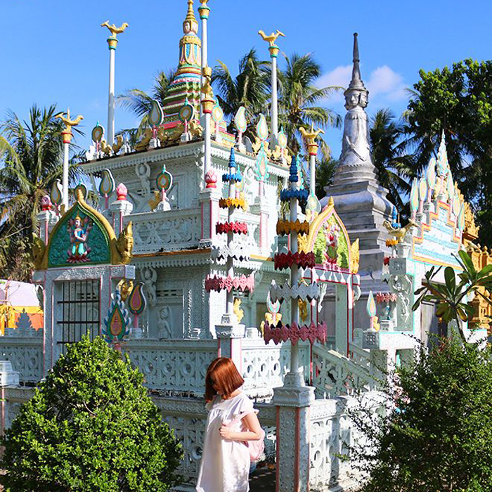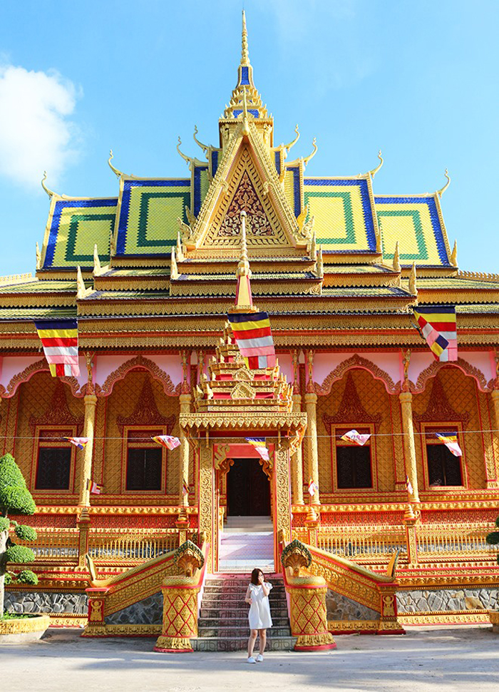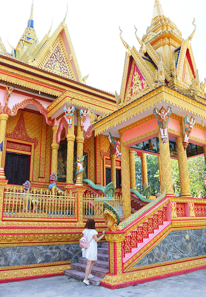 Bạn có thể di chuyển đến khu vực chính điện để cầu bình an cho người thân, gia đình và tiện cho việc khám phá từng nét đẹp của công trình kiến trúc này. Việc chụp ảnh check - in tại đây là hoạt động mà bạn không nên bỏ qua. Thêm một điểm cộng nữa là đồng bào Khmer ở đây vô cùng thân thiện với du khách.