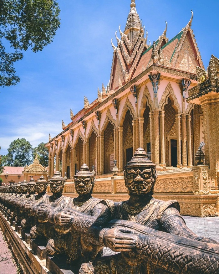 Đặc biệt, ngôi chùa nổi tiếng ở Trà Vinh trên còn sở hữu diện tích sân vườn rộng lớn với nhiều hạng mục công trình sở hữu nét đẹp kiến trúc Khmer tráng lệ, uy nghi nên du khách chắc chắn không nên bỏ lỡ cơ hội được dạo bước khám phá và tìm kiếm thêm nhiều góc view mới mẻ, lý tưởng cho bộ ảnh du lịch hấp dẫn nhé.