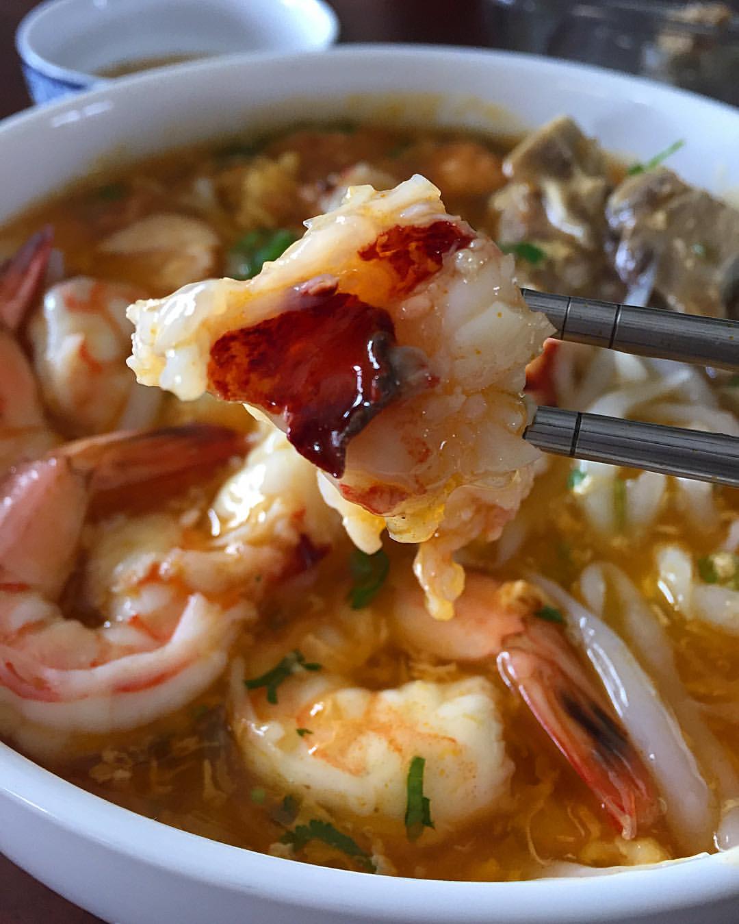 Bánh canh tôm hùm không biết gốc gác từ đâu nhưng nổi danh có lẽ từ xứ Huế – nơi được coi là thủ phủ của bánh canh với bánh canh chả cua, bánh canh Nam Phổ, bánh canh Thủy Dương. Tô bánh canh gây ấn tượng đầu tiên đó nhờ con tôm hùm loại nhỏ, đỏ au nhìn cực hấp dẫn.