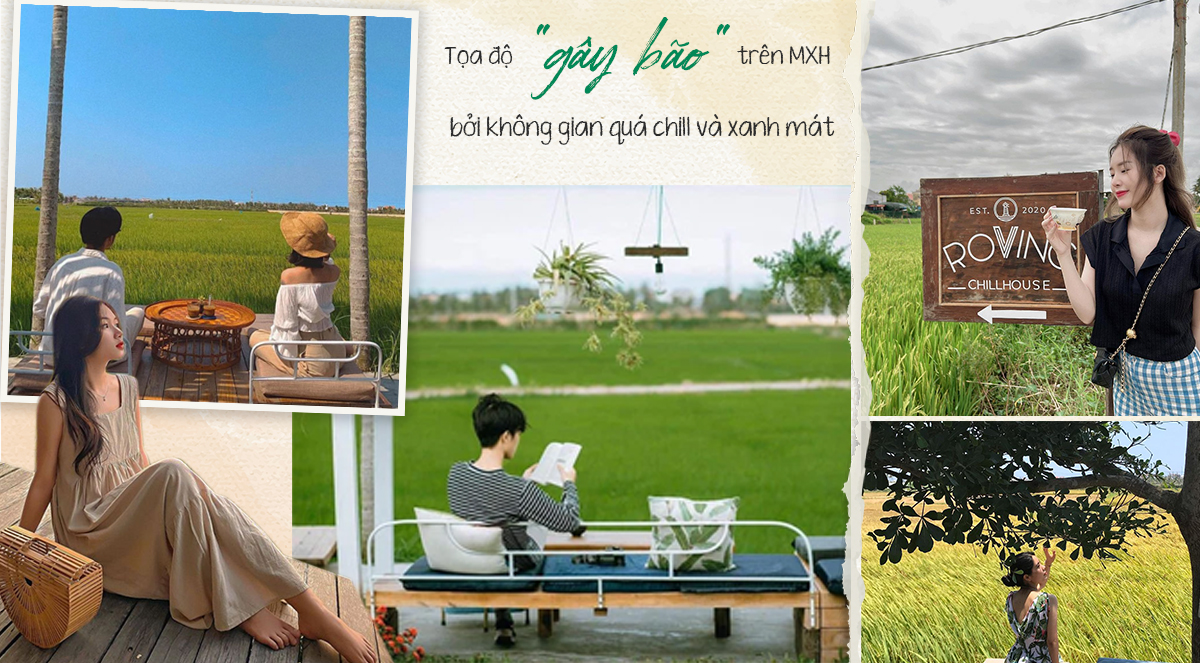 Cũng có “view” lúa mênh mông và luôn trong tình trạng hết chỗ mỗi dịp cuối tuần là quán cà phê Roving Chillhouse ở phường Cẩm Châu, TP Hội An. Nằm giữa cánh đồng, quán gồm khu vực trong nhà và ngoài trời, với bốn mặt là không gian mở. Ngồi chỗ nào bạn cũng có thể thoải mái chiêm ngưỡng cảnh thiên nhiên xanh ngắt mùa lúa non, vàng ươm mùa lúa chín. Vừa thưởng thức ẩm thực phố Hội, vừa ngắm nông dân làm đồng, hay thả hồn theo những con đường nhỏ rẽ vào thôn xóm bình yên. Nhiều du khách đã so sánh nơi đây với những quán cà phê giữa thiên nhiên ở Bali (Indonesia) hay Chiangmai (Thailand), vốn mê hoặc tín đồ du lịch khắp thế giới, phủ sóng mạng xã hội Facebook, Instagram, Tiktok,… Bên cạnh đó, cũng có một số mô hình tương tự được nhiều bạn trẻ ưa thích mà bạn có thể tham khảo như: Chicchillax, cà phê Xóm Chiêu,...