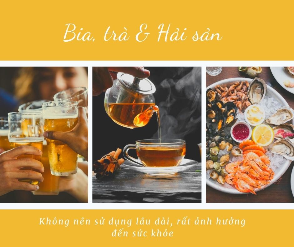 Bia, trà và hải sản – không dùng trong lúc ăn