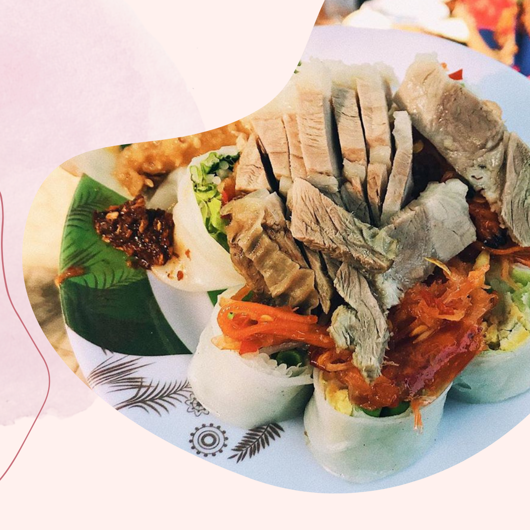 Sau khi tham quan các điểm du lịch nổi tiếng tại mảnh đất tuyệt đẹp này, bụng đã đói meo hoặc tối cuối tuần muốn đổi gió thì bạn có thể lựa chọn thưởng thức món bánh ướt cuốn tôm chua. Càng nhìn càng thấy món ăn hấp dẫn, màu đỏ tươi của tôm chua, màu xanh của rau, màu trắng của bún kết hợp lại như bức tranh ẩm thực. Điểm đặc biệt nằm ở món nước chấm, mỗi người nấu sẽ có bí quyết riêng để pha chế thành bát nước chấm ngon “nhức nhối”. Điểm chung là phần ruốc sẽ được pha chế thành màu nâu vàng sánh mượt. Còn gì tuyệt vời hơn khi chúng ta được chấm một miếng bánh ướt cuốn tôm chua với chén ruốc đậm đà, cảm nhận sự tươi ngon của rau, miếng thịt thơm ngọt và độ mềm dẻo của bánh ướt. Thêm nữa, phần tôm chua đậm vị và mắm ruốc vô cùng đậm đà.
