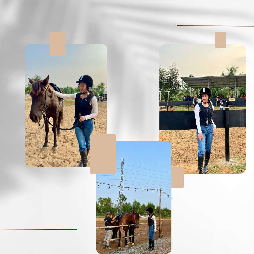 Tiếp đó, các huấn luyện viên sẽ chia sẻ về những quy tắc nhằm giữ an toàn cho bạn, hướng dẫn đeo đồ bảo hộ và những trang bị cần thiết. Bạn sẽ được học các điều lệnh cơ bản để biết cách điều khiến và cưỡi ngựa. Và sau khi đã nắm rõ các thao tác, bạn sẽ tập cách lên ngựa và cưỡi dạo quanh sân.
