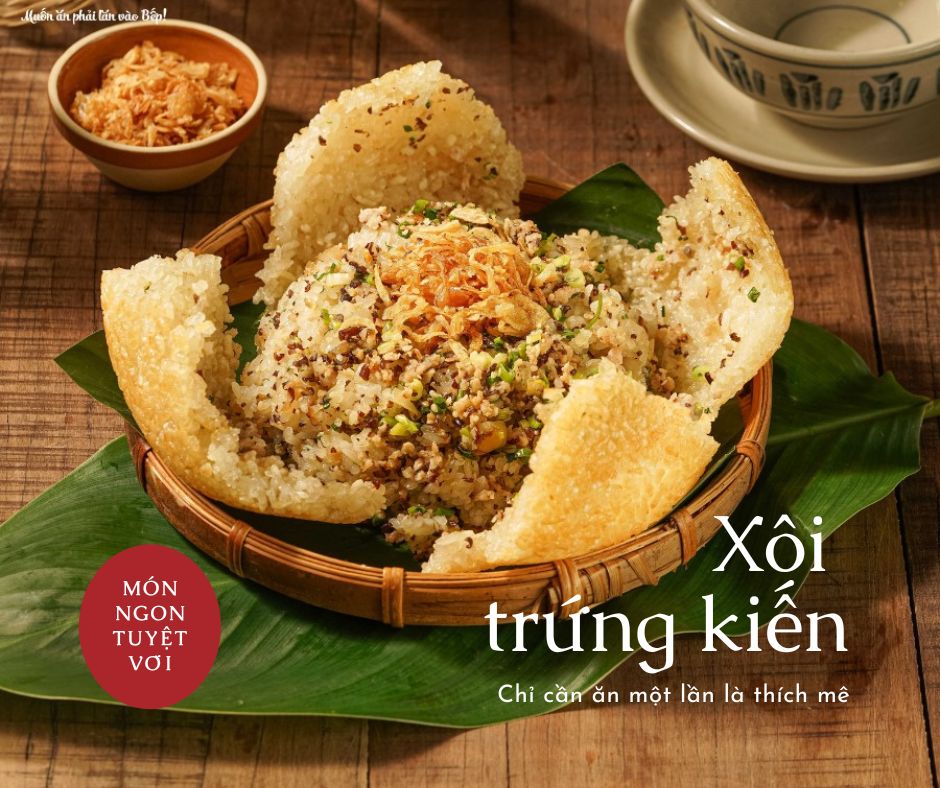 Là một đặc sản nổi tiếng của người Tày ở phía Bắc, mới nghe qua cái tên đã có rất nhiều người yếu tim không dám… nếm thử. Một phần vì xa lạ, một phần vì nguyên liệu món ăn này nghe sao mà… kinh dị đến thế. Nhưng không, nếu bỏ qua rào cản ban đầu, thì xôi trứng kiến là một đặc sản ngon tuyệt mà tin chắc rằng chỉ cần bạn dám thử, bạn sẽ ấn tượng mãi không quên.