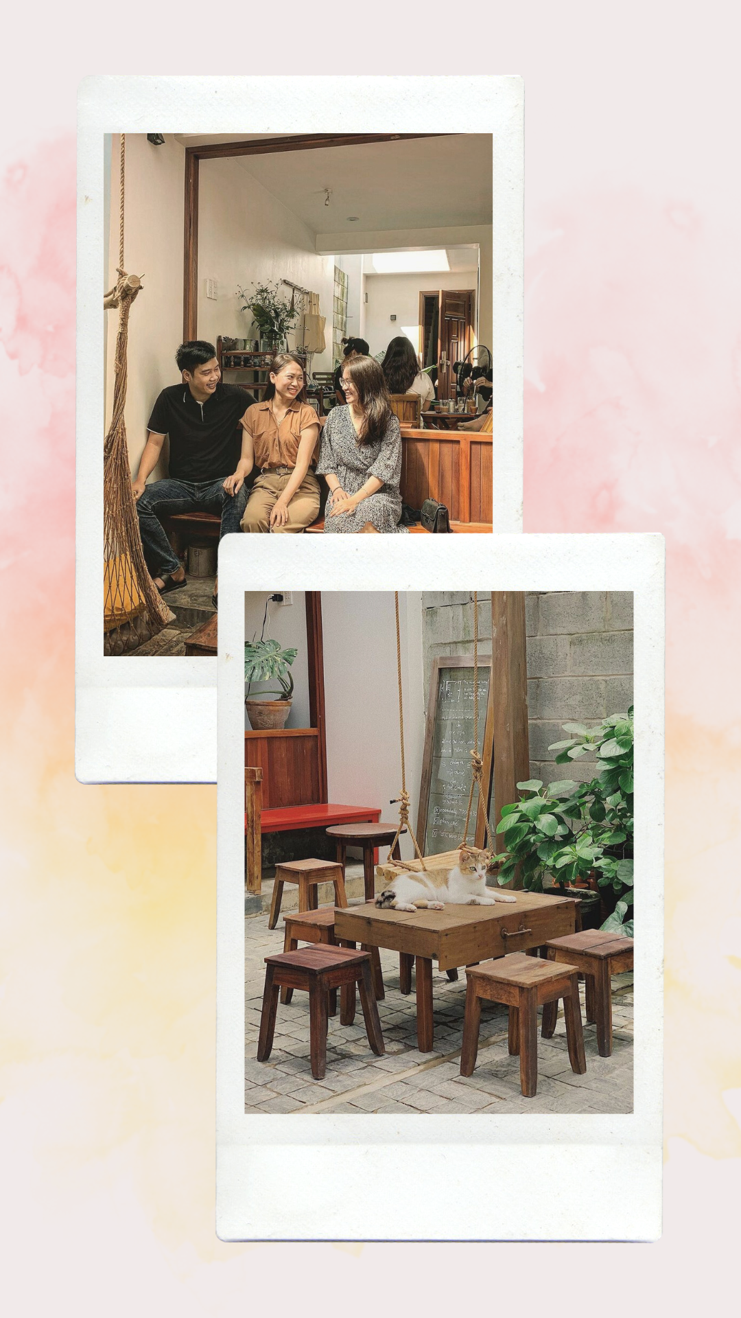 Phần mái che sân vườn được lợp bằng khung gỗ đan xen giúp ánh sáng tự nhiên chan hòa vào không gian quán, nên tạo cảm giác thoải mái vô cùng. Đây cũng trở thành điểm nhấn giúp các tín đồ ham mê sống ảo có thể thoải mái “tác nghiệp” rồi. Còn gì tuyệt vời hơn cảm giác được ngồi xinh xắn giữa khu vườn nhỏ, thư giãn tại khu vực bàn ghế gỗ vô cùng mộc mạc và nhâm nhi một ly cà phê cùng người thân của mình.