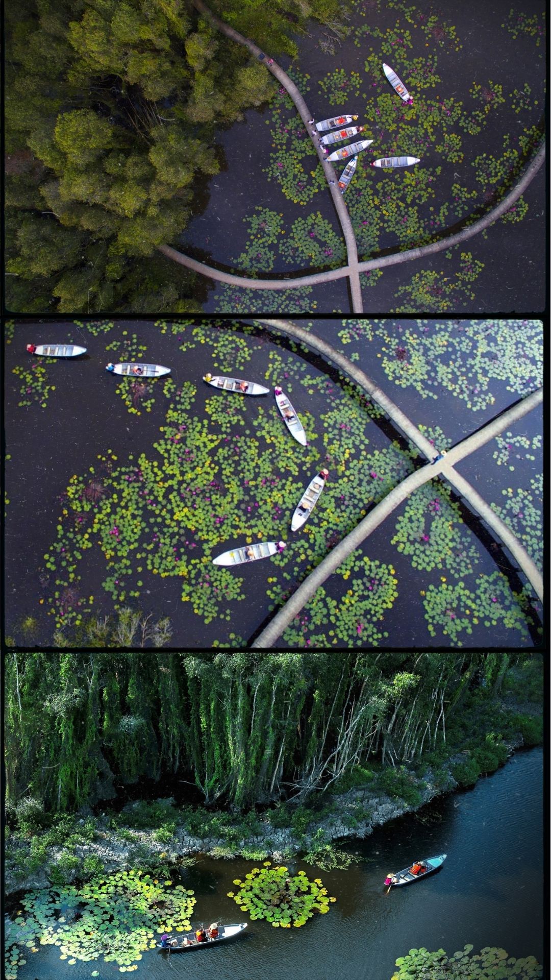 Cận cảnh vẻ đẹp ngoạn mục khi nhìn từ trên cao của làng nổi Tân Lập. Ảnh: TourdulichmienTay, BaoGiaLai