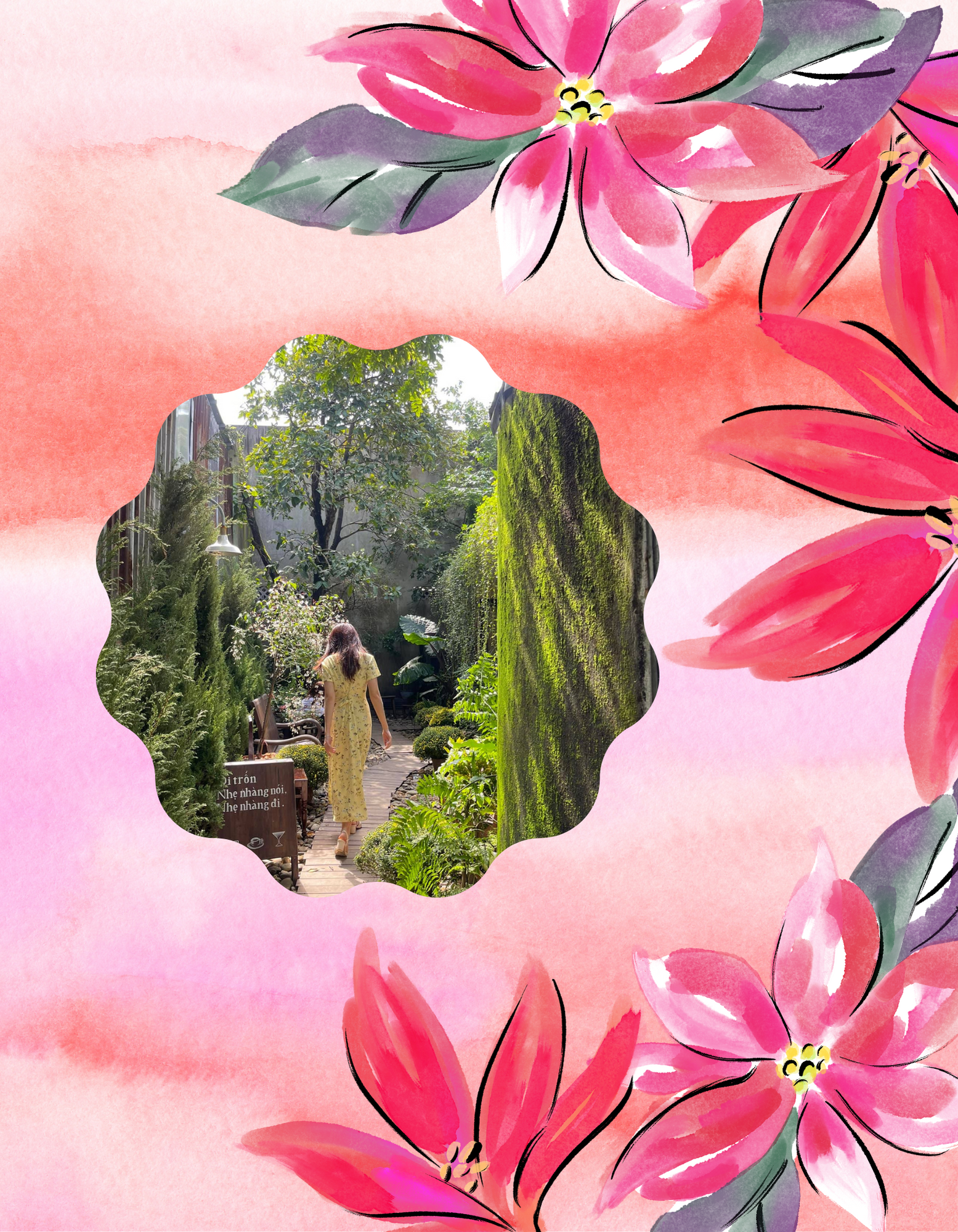 Khi bước vào bên trong Trốn, bạn sẽ bị ấn tượng bởi ngôi nhà được trang trí toàn bằng gỗ tạo cảm giác rất thân thuộc. Bên ngoài có khoảng sân vườn với nhiều cây cối, phù hợp team thích không gian xanh. Ngoài ra, tại Trốn cũng rất nhiều góc “sống ảo” lên hình cực thơ. Từ con đường lát gỗ dẫn vào quán với hai bên là những chậu cây xanh mướt, cho đến chiếc bồn tắm ở giếng trời, chiếc ghế gỗ đung đưa giữa vườn.