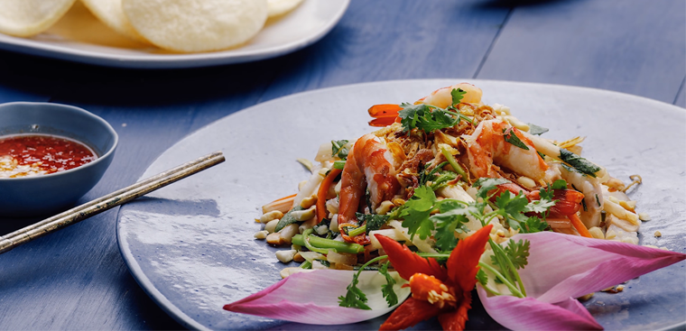 Điển hình đầu tiên là món gỏi ngó sen. Ngó sen sau khi rửa sạch, cắt sợi sẽ được trộn với gia vị như chanh, đường, mắm, ớt và một chút rau thơm. Khi ngó sen đã thấm đều gia vị thì người ta bắt đầu xé nhỏ thịt gà đã luộc chín ra và trộn vào cùng. Gỏi ngó sen mà được trộn với gà ta xé phay là có ngay món ngon chuẩn vị nhất bạn nhé. Gỏi chua chua, ngọt ngọt, cay cay lại thêm độ dai và ngọt của thịt gà, khi ăn có thể chấm thêm một tí nước mắm pha sẵn là đã ngon đủ vị.